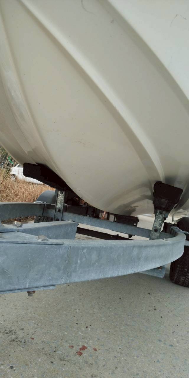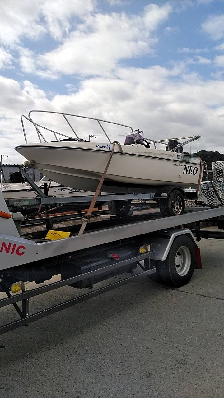 軽トレーラーでの移動が可能な可搬型ボートです。トレーラーは年式からかタイヤ軸やホイールの錆が多かったため査定金額がお付けできませんでしたが、カーポートでの保管をされていたので非常に綺麗でした。